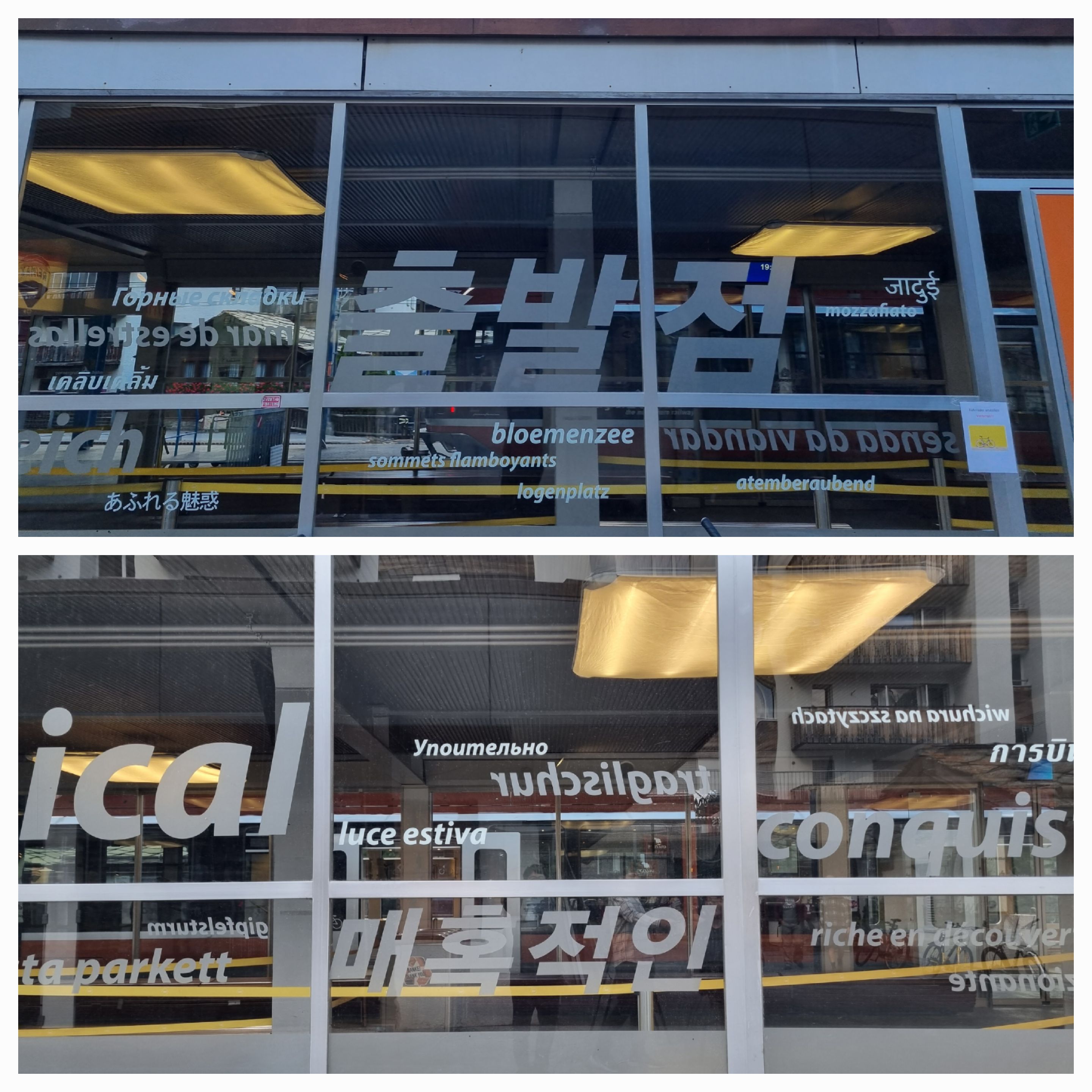 고르너그라트 전망대를 가는 체르마트 출발역 (gornergrat bahn) 창에 우리말이 쓰여 있어요
