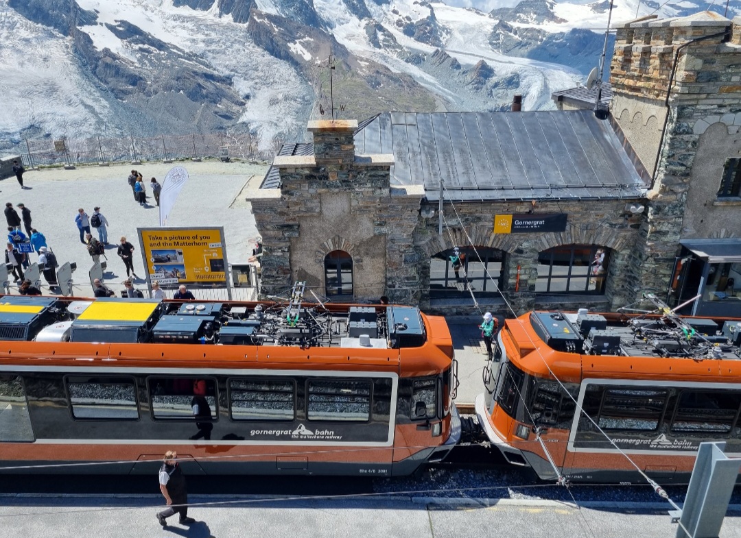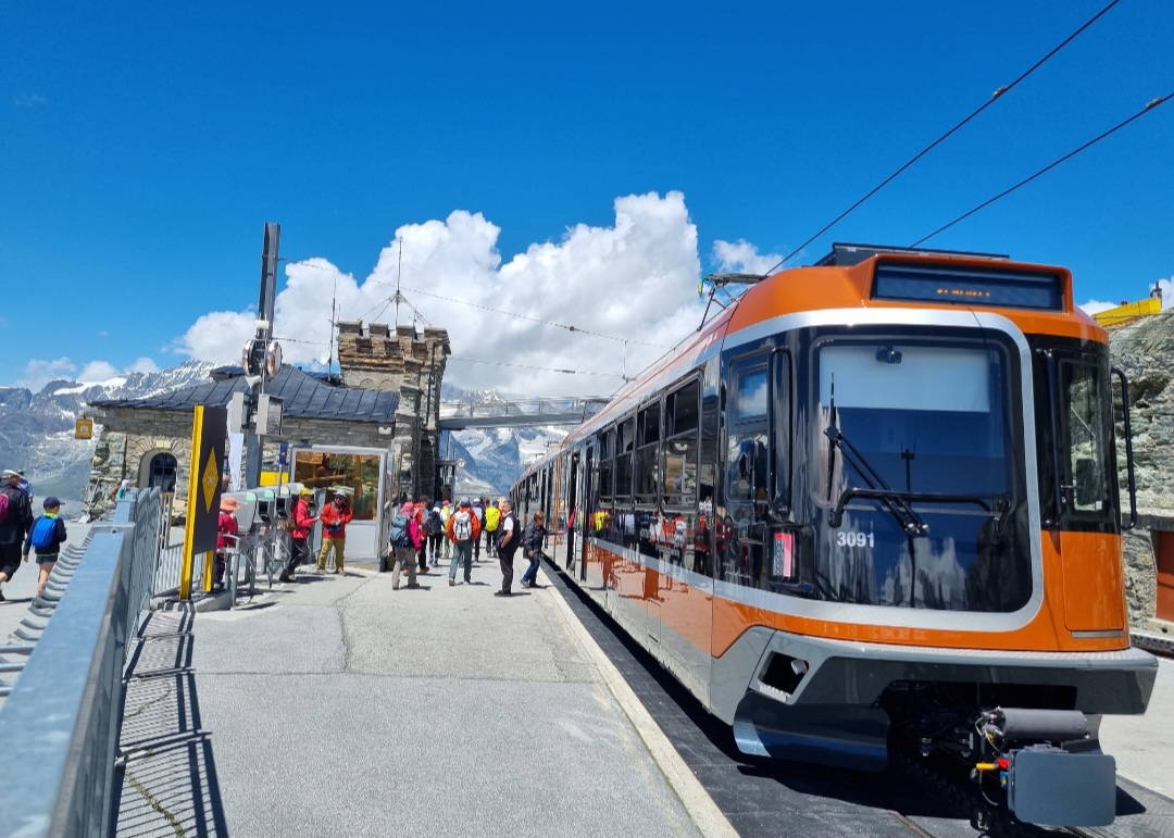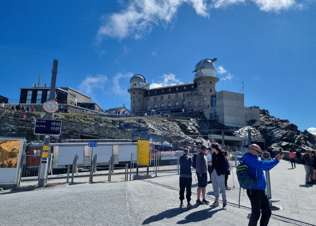 체르마트에서 산악열차를 타고 올라와 고르너그라트역에서 내리는 관광객들