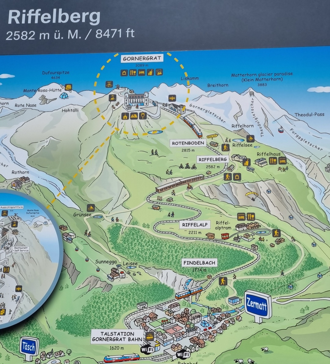 체르마트 →리펠알프 →리펠베르그 →로텐보덴 고르너그라트 도착하는데 약 30분 걸립니다